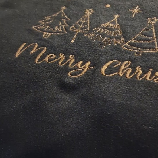 🎄 Stijlvolle "Merry Christmas" borduring in mokka kleur.